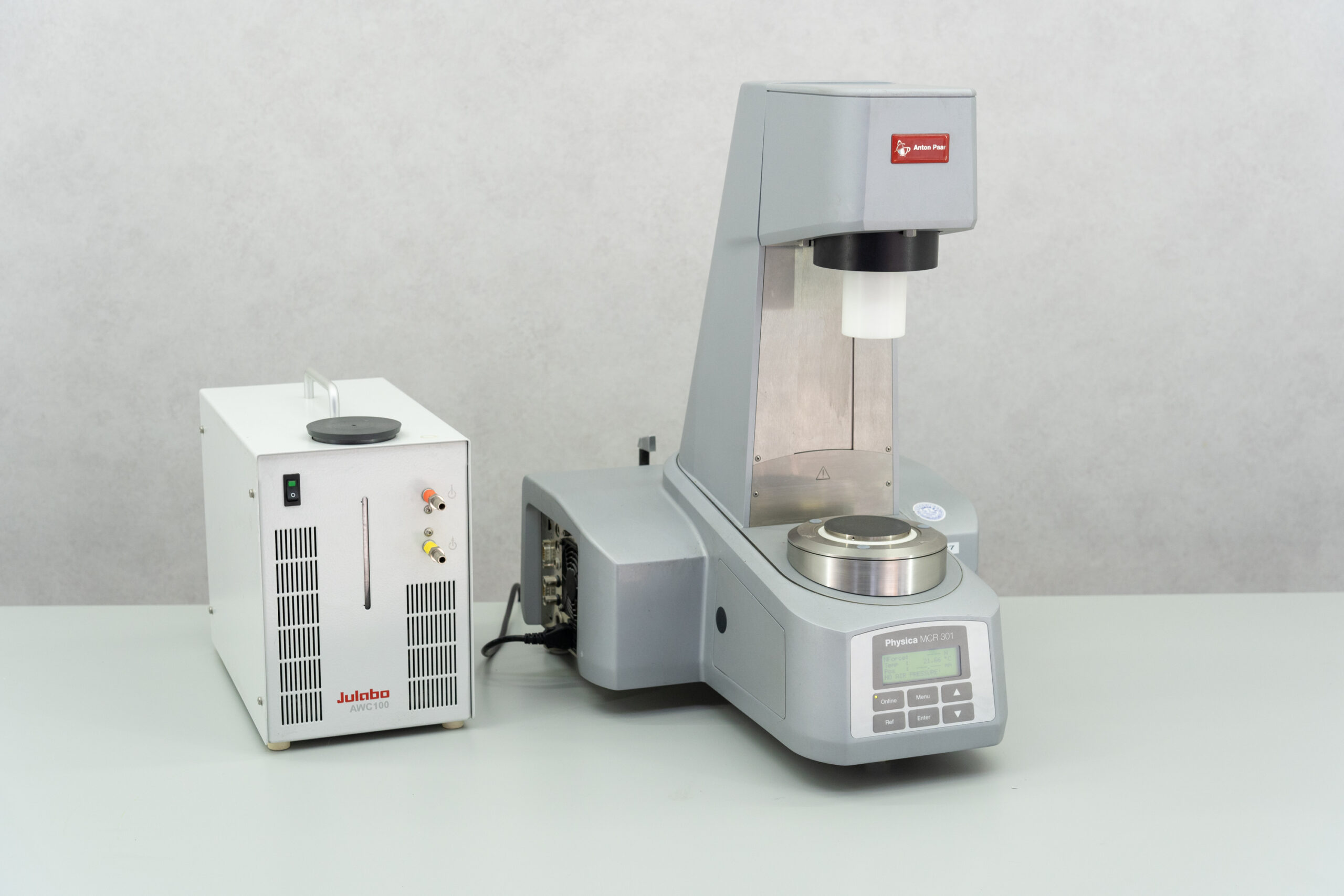 Physica MCR 301 rotational rheometer (Anton Paar) is equipped with a Peltier HOOD, which enables homogenous maintenance of the sample in a wide temperature range (-30 to 200°C) and additional chamber “Evaporation blocker H-PTD” prevents evaporization of the sample.